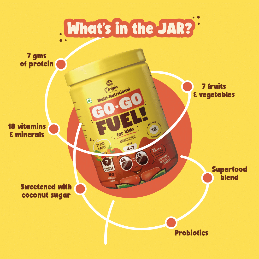 Go-Go Fuel is full of vegan protein, 7 veggies & fruits, probiotics, dietary fibre, superfoods and 18 vitamins and minerals and does not contain any refined sugar. It is an all-in-one plant based multi-nutritional drink and provides complete nutrition and tastes great. As a parent, you can have peace of mind about your child’s nutrition.